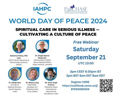 Join us for a webinar on World Day of Peace: Spiritual Care in Serious Illness, Cultivating a Culture of Peace